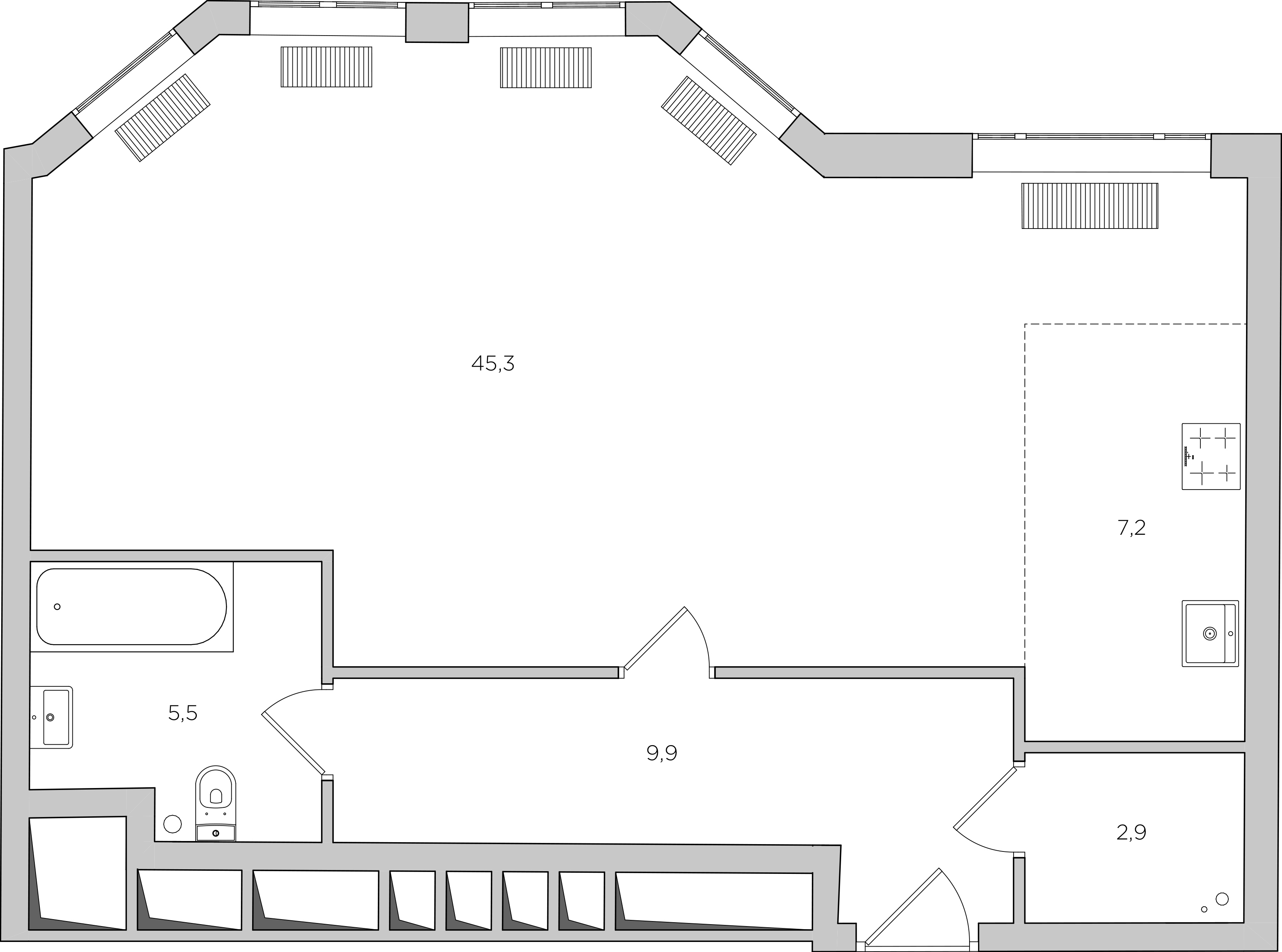 We designed a guest bathroom instead of the former corridor. Despite the functional zone exceeding the borders of the bathroom; this solution is legitimate since the zone is separated from the bathroom by a divider. It’s necessary just to place any door or make a doorway for the project’s approval.